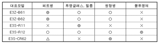 *참고 : 투명체가 들어가면 우선적으로 E3Z-B시리즈를 추천합니다.