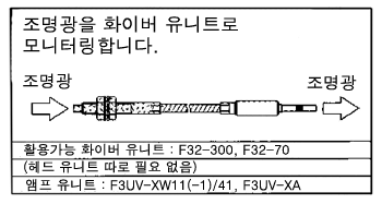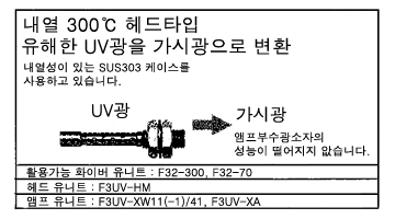 UV파워 모니터는 UV빛을 가시광선으로 변환하는 것으로 앰프부 수광소자의 성능이 떨어지는 것을 막습니다.