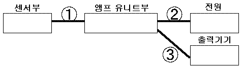 센서⇔앰프부 간 코드(下記①)20m이내, 전원/출력 코드(下記②, ③)은