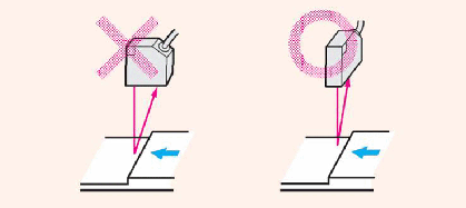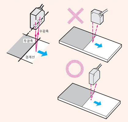 아래 그림과 같이 투광축과 수광축을 연결하는 선을 대상물의 경계선과 평행이 되도록