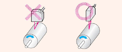 투광축과 수광축을 연결하는 선을 회전축과 평행하게 설치하면 회전체의 상ㆍ하 흔들림이나