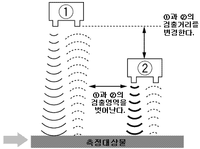 다만, 이 동기 운전은 각각의 초음파 센서와 측정 대상물과의 검출 거리가
