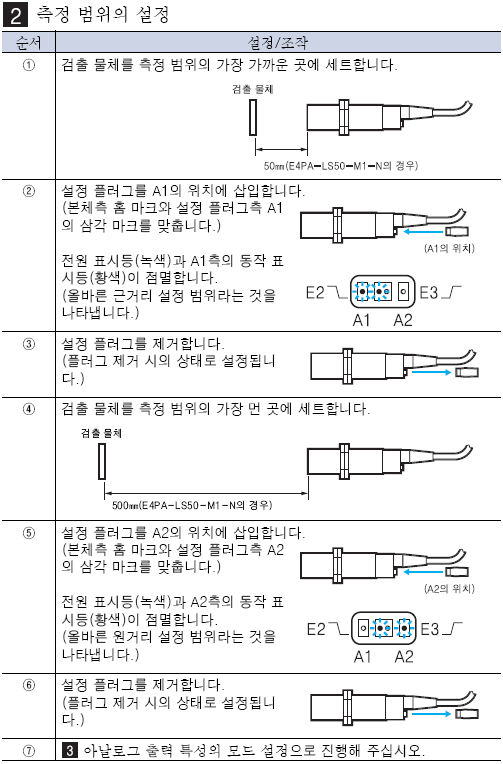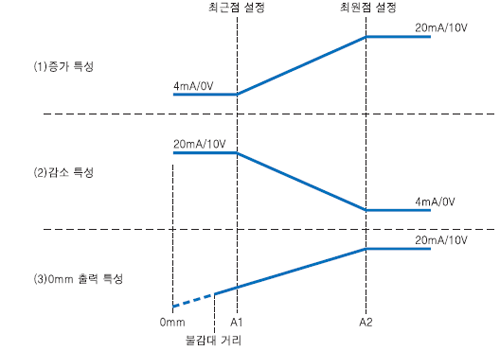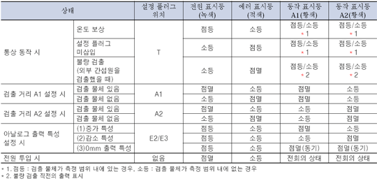※주. 검출물체에서의 반사가 매우 약하거나 검출물체가 측정 범위 밖에 설치되어 있을 때에는