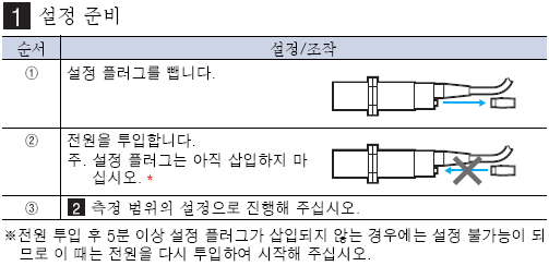 1 → 2 → 3 → 4의 순서로 설정한 후 2. 측정범위, 3. 아날로그 출력 특성을 변경하는 경우에는