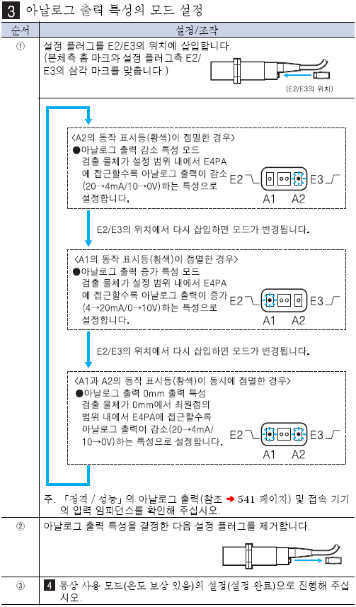 *설정 플러그 E2/E3 위치 설정 시 아날로그 출력 특성