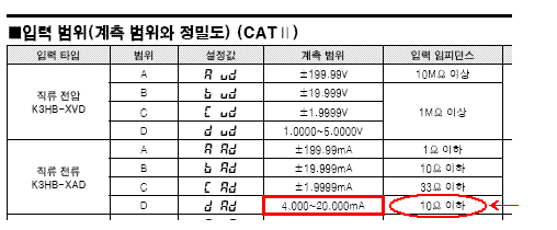 1. K3HB-X의 입력 임피던스를 확인합니다 → 10Ω 입니다.