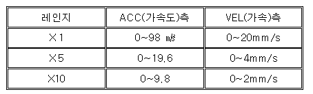 가속도라는 것은, 단위시간 당의 속도의 변화량을 나타내는 것으로, ACC 모드에서 검출할 수 있는 진동의 주파수범위는 넓어집니다. (ACC 모드에서 검출할 수 있는 진동의 주파수범위는 20~2000Hz)