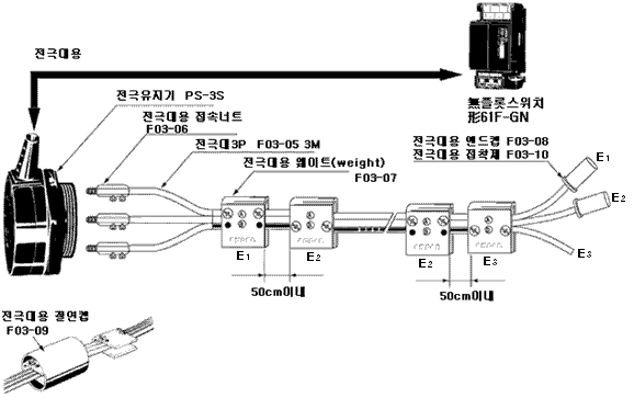 E1=1m, E2=2m, E3=3m 일 경우, 필요 부품과 수량