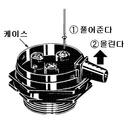 (2)케이스의 조임나사 2개를 느슨하게 풀고 케이스를 들어 올려 벗겨낸다.