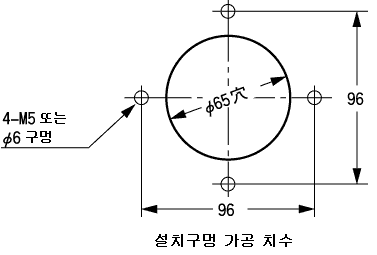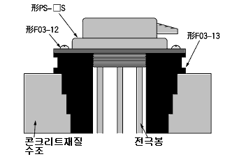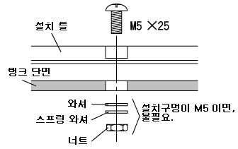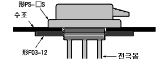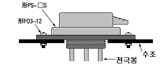 수조에 φ65 구멍을 내고 전극유지기를 삽입하여 아래쪽에서 취부틀 F03-1(별매품)을