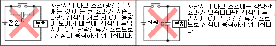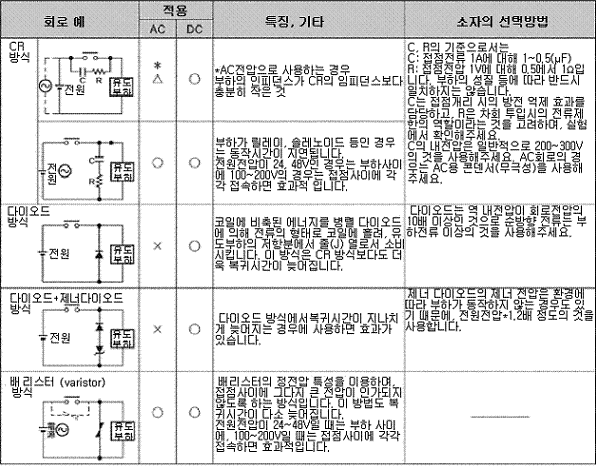 또한, 다음과 같은 접점 보호회로의 사용은 하지 말아 주세요.