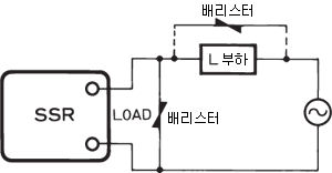 (3) 서지 흡수용 배리스터를 내장하지 않은 SSR로 유도부하 개폐시에는 서지대책을 반드시 실시해주세요. (아래 그림 참조)
