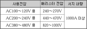 ※ 내장 배리스터(서지 내량 700~1000A)로 흡수되지 않는 노이즈에 따른 영향이 우려되는 경우는 별도로 내장 배리스터의 서지 내량 이상의 배리스터를 외부에 부착하는 대책이 필요합니다.