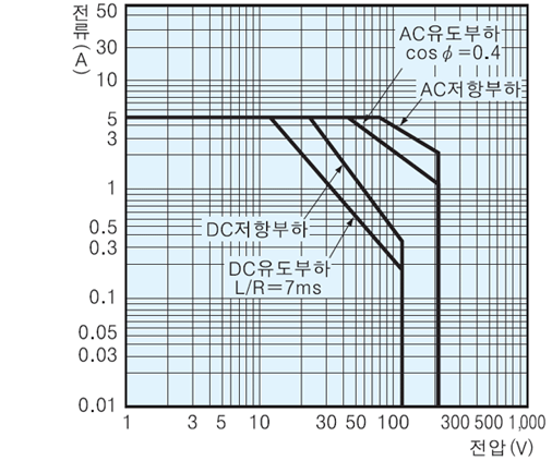 단, 아래와 같은 '개폐 용량의 최대값' 그래프를 참고하여 최대값을 넘지 않도록 하여 주십시오.