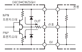 아래의 그림과 같이 출력에 NPN과 PNP의 2개의 출력 트랜지스터를 가진 출력 회로입니다.
