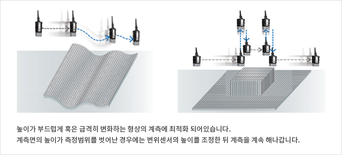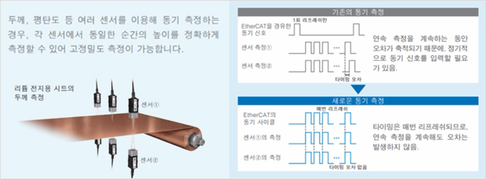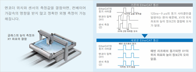 초장거리에서 초고정밀도까지 핵심적인 품질을 지원하는 백색, 공초점 방식의 변위 센서와 NJ LC의 EtherCAT 통신을 통해 모션 동기화하여, 단차가 있는 워크의 변위량을 고정밀도로 계측이 가능합니다.