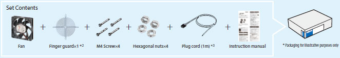 * 2. 핑거 가드는 수량에 따라 형식이 다릅니다. 자세한 내용은 카탈로그의 세트 형식을 참조하십시오. * 3. AC 프리 입력 축류 팬 만
