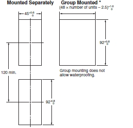 · 상하 방향은 밀착 설치할 수 없으므로 주의하십시오.(설치 간격을 지켜주세요)